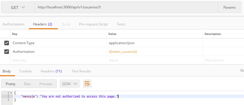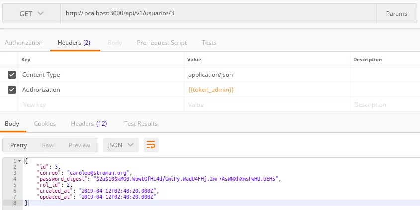 Pedimos el usuario con id 3 y enviamos el token del administrador, y lo devolverá sin problemas pues el puede realizar está acción