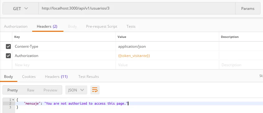 El enviroment en postman contiene los tokens (el del visitante simplemente no es nada)